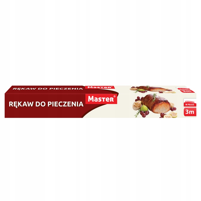 Rękaw do pieczenia Master umożliwia pieczenie potraw bez potrzeby brudzenia blachy. Rękaw można stosować w tradycyjnych piekarnikach oraz kuchenkach mikrofalowych. Jest odporny na temperatury do 200°C.