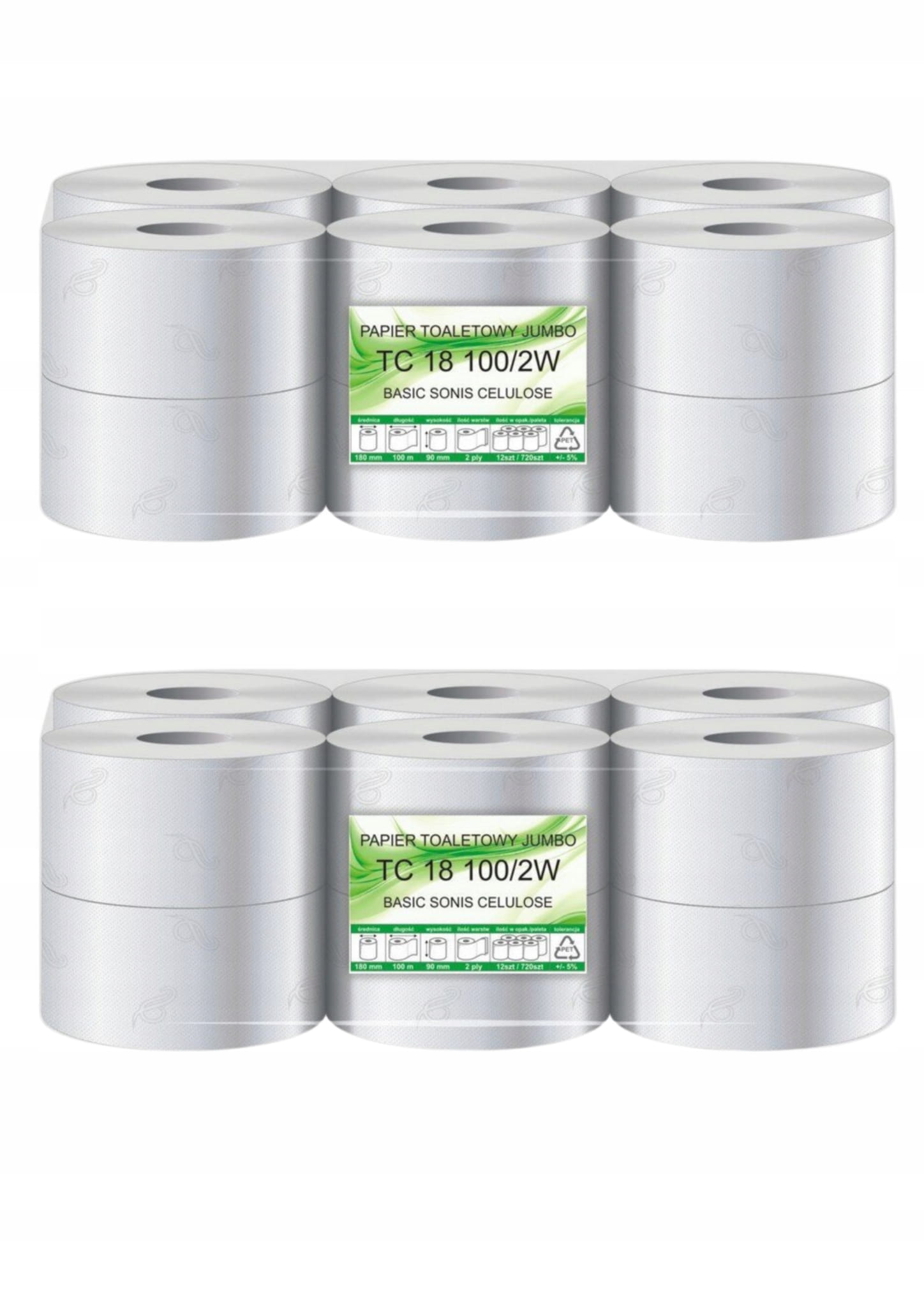 Zestaw papier toaletowy Jumbo Fi18 celuloza a'12szt 2W/100m x2