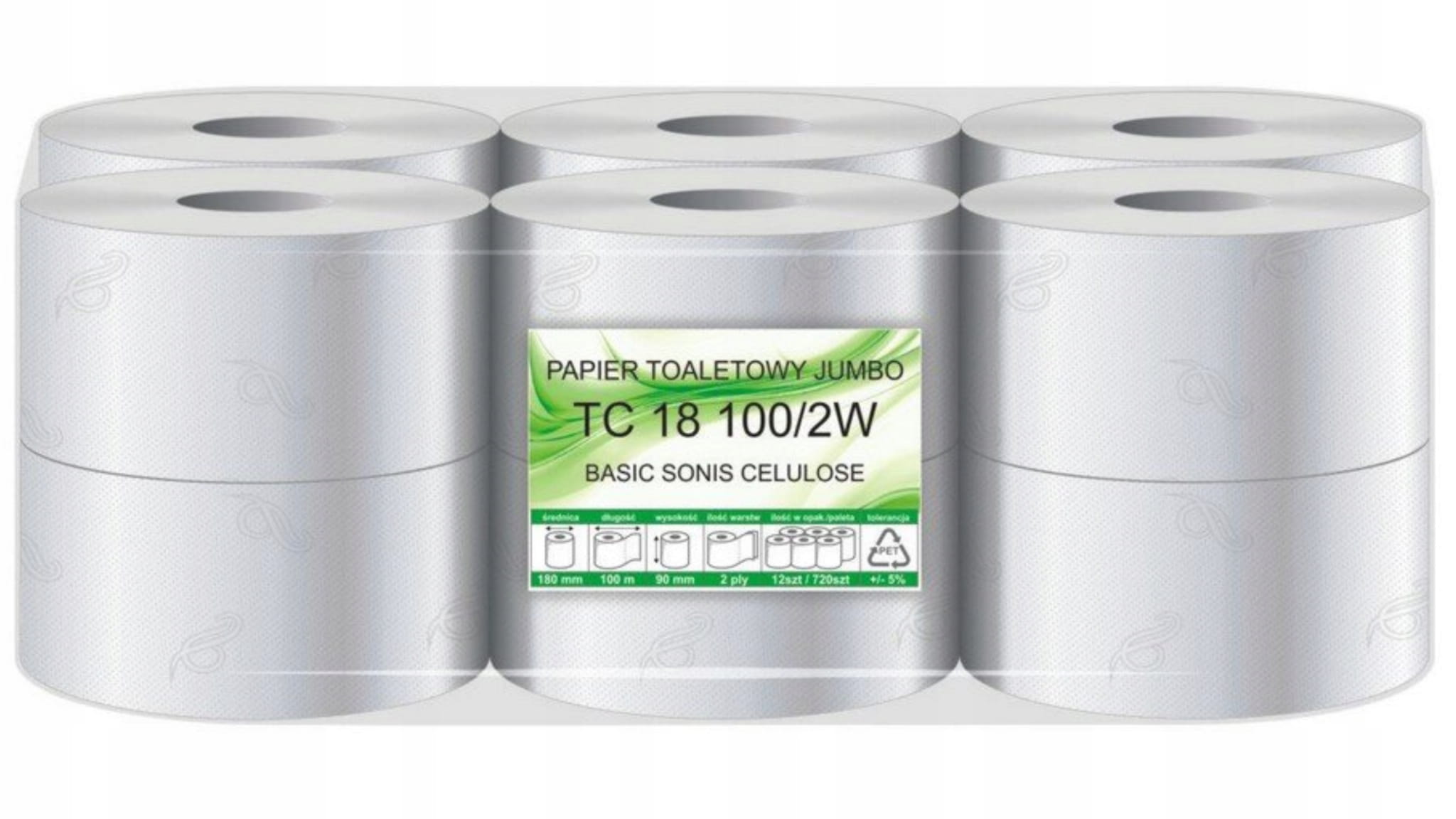 Taniej w zestawie!Wysokiej jakości biały papier toaletowy do podajników typu jumbo. Wykonany ze 100% celulozy. Do użytku w biurach, szpitalach, hotelach, sklepach, restauracjach, szkołach i wszelkiego rodzaju placówkach użyteczności publicznej.